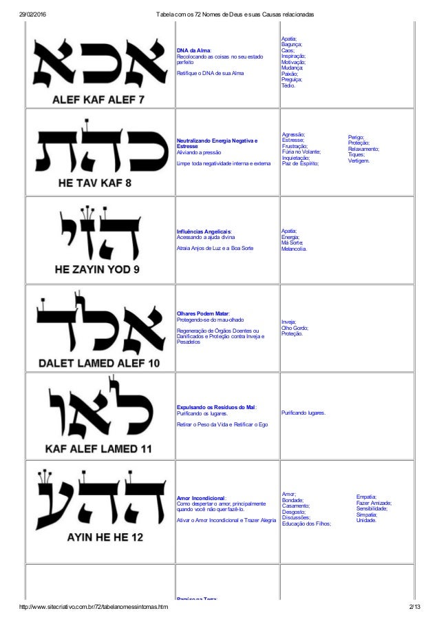 Tabela Com Os 72 Nomes de Deus PDF Amor Deus