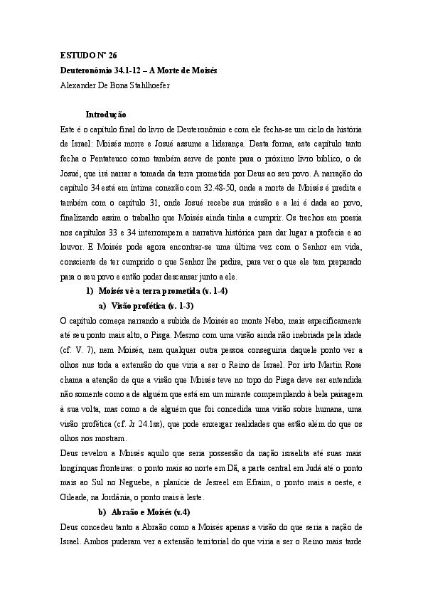 (DOC) Estudo Bíblico Deuteronômio 34.112 A Morte de Moisés Alexander Stahlhoefer