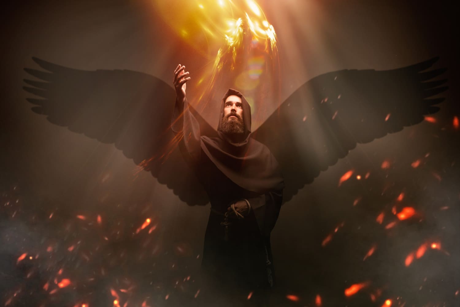 Conta que ele pertencia a corte astral, celestial, havia um anjo chamado Lúcifer, Anjo Belo, o primeiro dos querubins, com grandes poderes e conhecimentos. Estranhos sentimentos, orgulho e vaidade, penetraram em seu coração, fazendo com eu conspirasse contra Deus, querendo o lugar do Altíssimo. Conseguiu o, o Anjo Belo arrebatar uma legião.