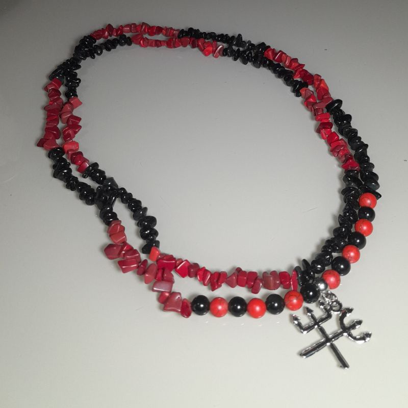 Colar de Proteção Exu Pombagira / Guia de Pedra Natural Turmalina e Jaspe Vermelho / Umbanda