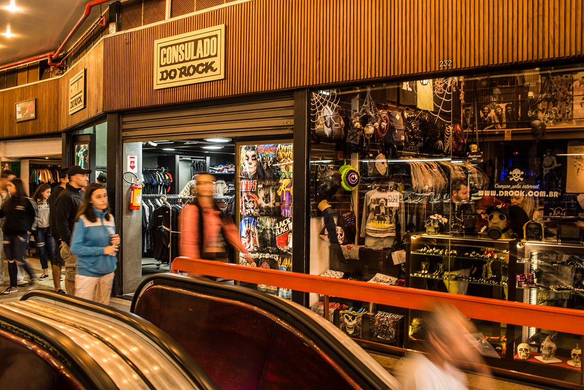 E estamos falando não só de instrumentos ou discos, mas de vestuário, calçados, tatuagens, skate, salões de beleza e todo tipo de produto que tenha algum vínculo com a cena do Rock e a Arte Urbana. A Galeria conta com 450 estabelecimentos comerciais das mais variadas especialidades. É o lugar perfeito para encontrar raridades e.