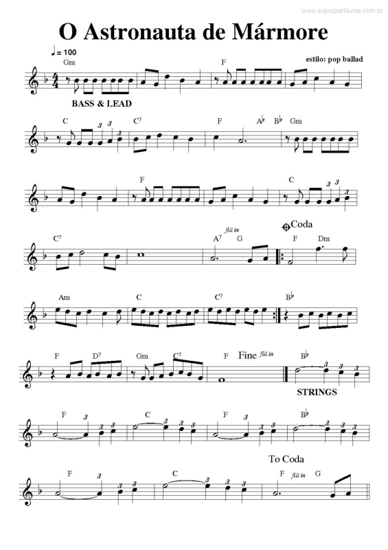 Super Partituras O Astronauta de Mármore (Nenhum de Nós), com cifra