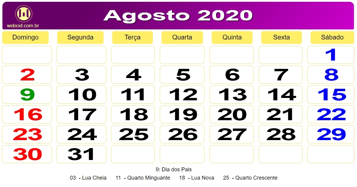 agosto de 2023 calendario grátis em português Calendario agosto