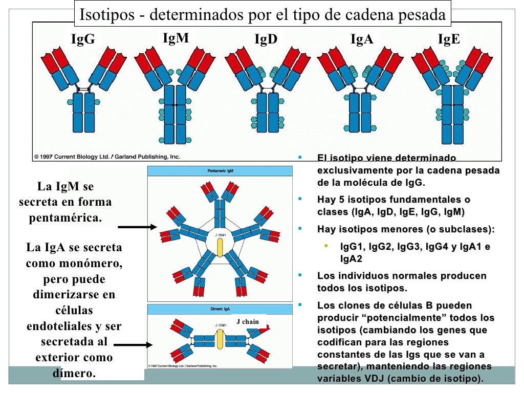 O IgG está presente na linfa e no sangue e dividi-se em subclasses: IgG1, IgG2, IgG3 e IgG4. Note que a Imunoglobulina G é a única que atravessa a placenta. IgE (Imunoglobulina E): importante isotipo de anticorpo que atua nos processos alérgicos, nas verminoses e protozooses. Presente no soro sanguíneo, o IgE é encontrado na superfície.