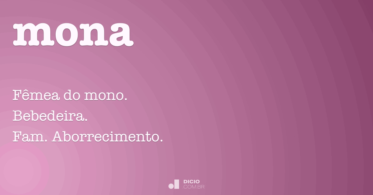 bipé bagulho com parcimônia madraçar dardejar madracear catre chuva fogo canjica bebedice. Significado de Mona no Dicio, Dicionário Online de Português. O que é mona: s.f. Fêmea do mono. Chul. Bebedeira. Fam. Aborrecimento.