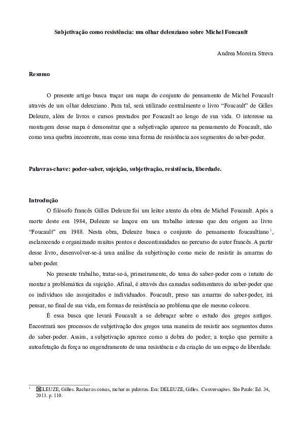 (PDF) Subjetivação como resistência um olhar deleuziano sobre Michel Foucault Andrea Moreira