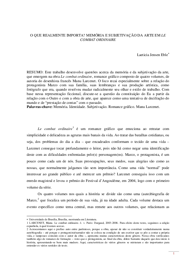 (PDF) O que realmente importa? Memória e subjetivação da arte em Le combat ordinaire Laeticia