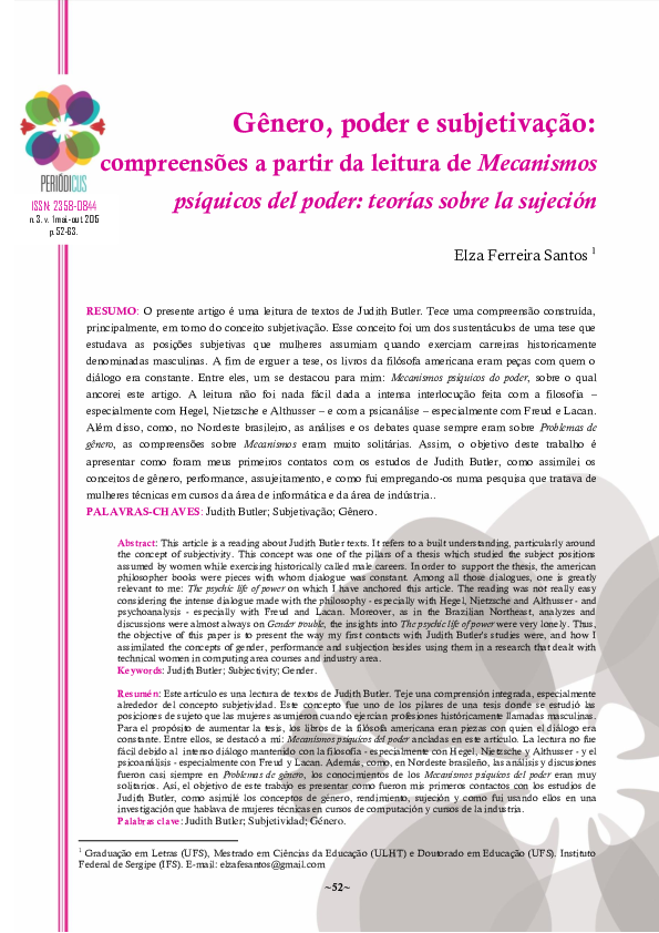 (PDF) Gênero, poder e subjetivação compreensões a partir da leitura de Mecanismos psíquicos del
