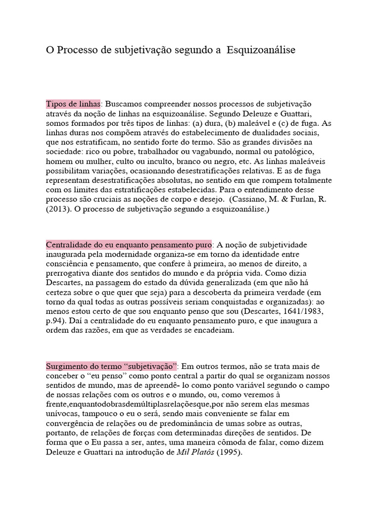 O Processo de Subjetivação Segundo A Esquizoanálise PDF