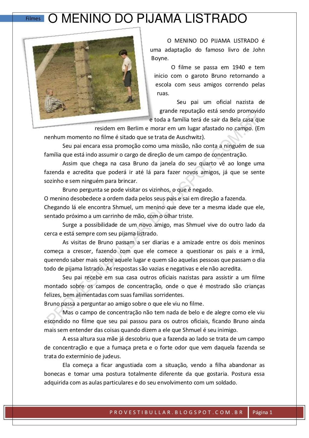 Resumo Do Livro O Menino Do Pijama Listrado EDUCA