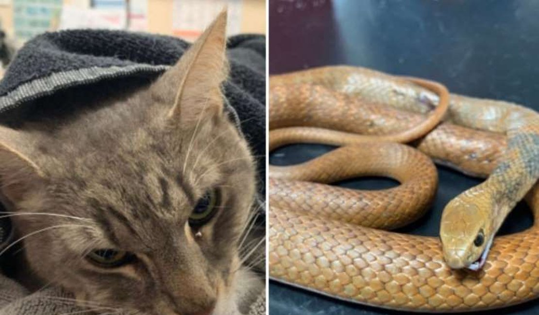 Gato traz cobra de duas cabeças raríssima para casa e assusta comunidade
